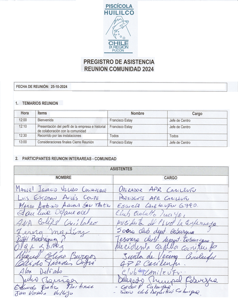 Se reseñó la gestión de Piscícola Huililco durante 2024 y las diferentes interacciones efectuadas con la comunidad