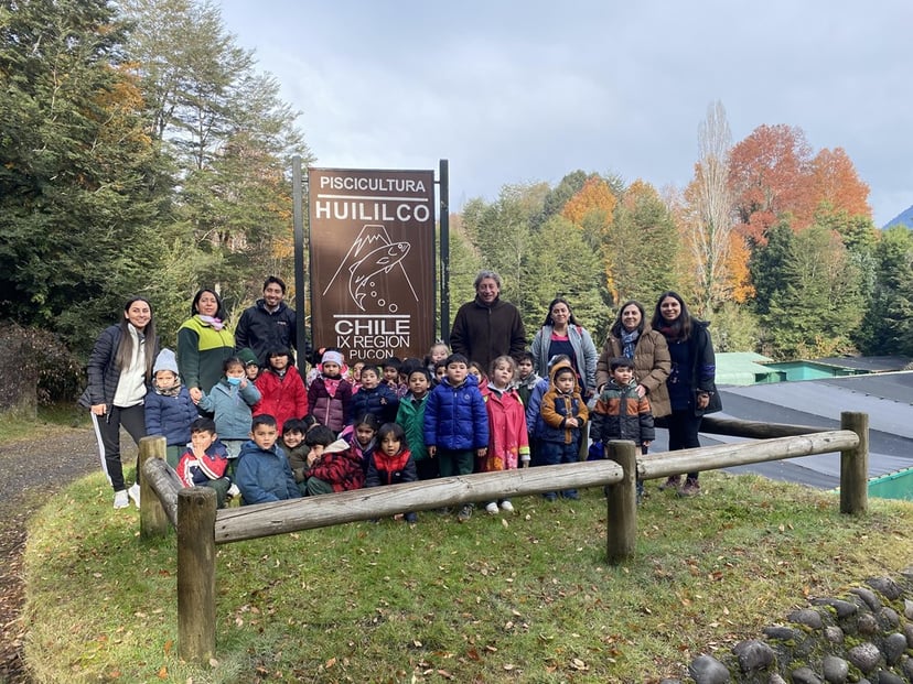 Con fecha martes 28 de Mayo de 2024 el Centro de Piscícola Huililco Ltda., recibió la visita de 38 alumnos de prebásica en nuestro centro de piscicultura Ojos del Caburgua. Como ya es una tradición durante los últimos años esta actividad se efectúa en coordinación con el Complejo Educacional Carlos Holzapfel en el contexto del Mes del Mar. Lo niños vinieron acompañados de sus educadoras de párvulos y algunos apoderados y pudieron disfrutar de la observación y alimentación de los peces y conocer las ovas y alevines que se producen en nuestra piscicultura.