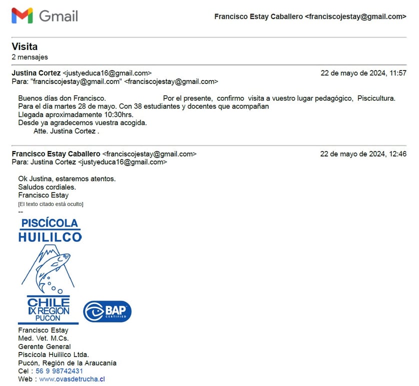 Con fecha 24 de Julio de 2024, Piscícola Huililco Ltda. efectuó una donación de 300 alevines de trucha arco iris de nuestra línea Blueback, para las actividades de capacitación de los alumnos del Centro Experimental de Acuicultura del Liceo Tecnológico Montemaría.