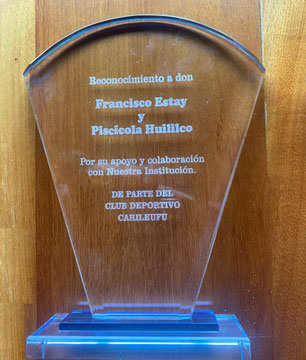 En esta ocasión el Club Unión Deportivo Carileufu hizo entrega a Piscícola Huililco de un bonito galvano, en agradecimiento al frecuente apoyo brindado a sus equipos de fútbol.